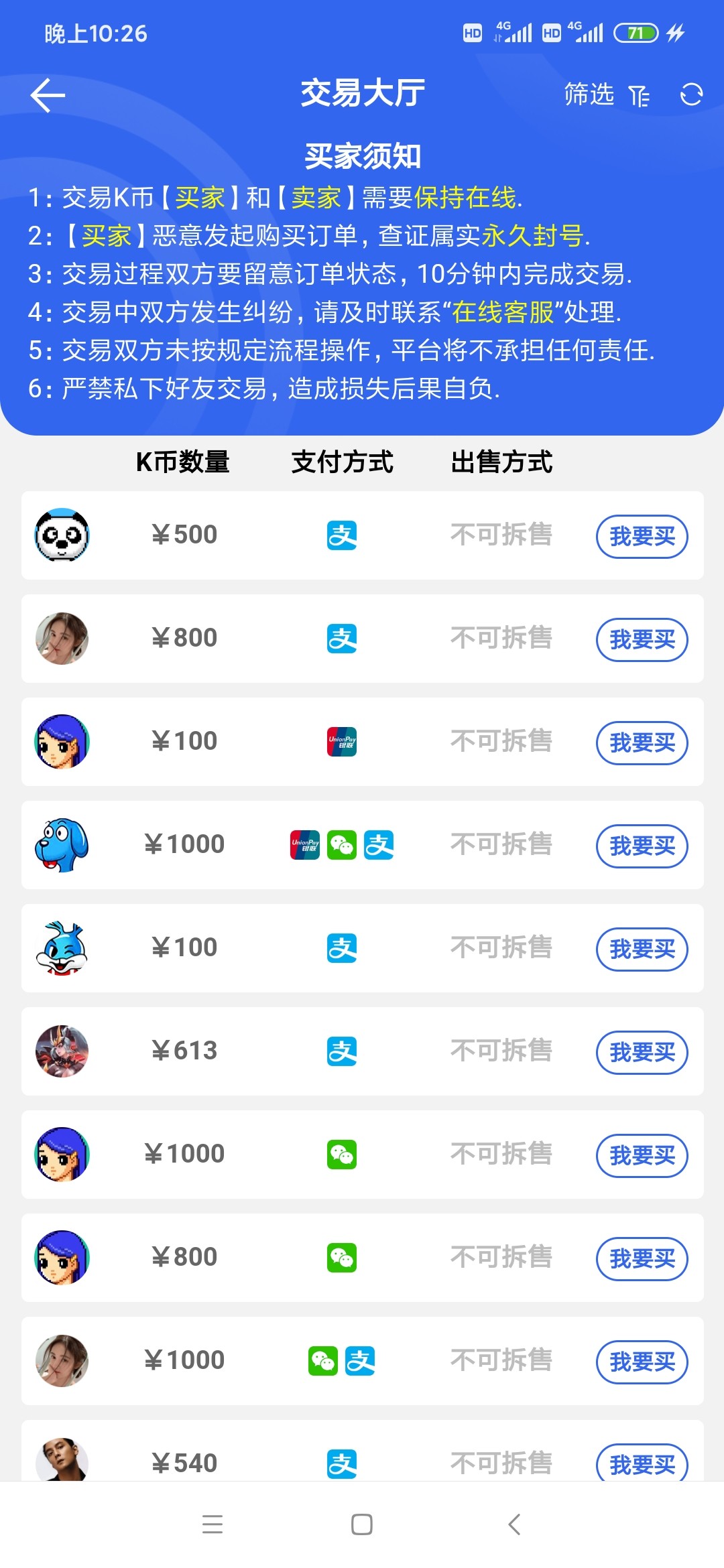 卖个几百都卖不出去,100挂了半个小时了还没买的