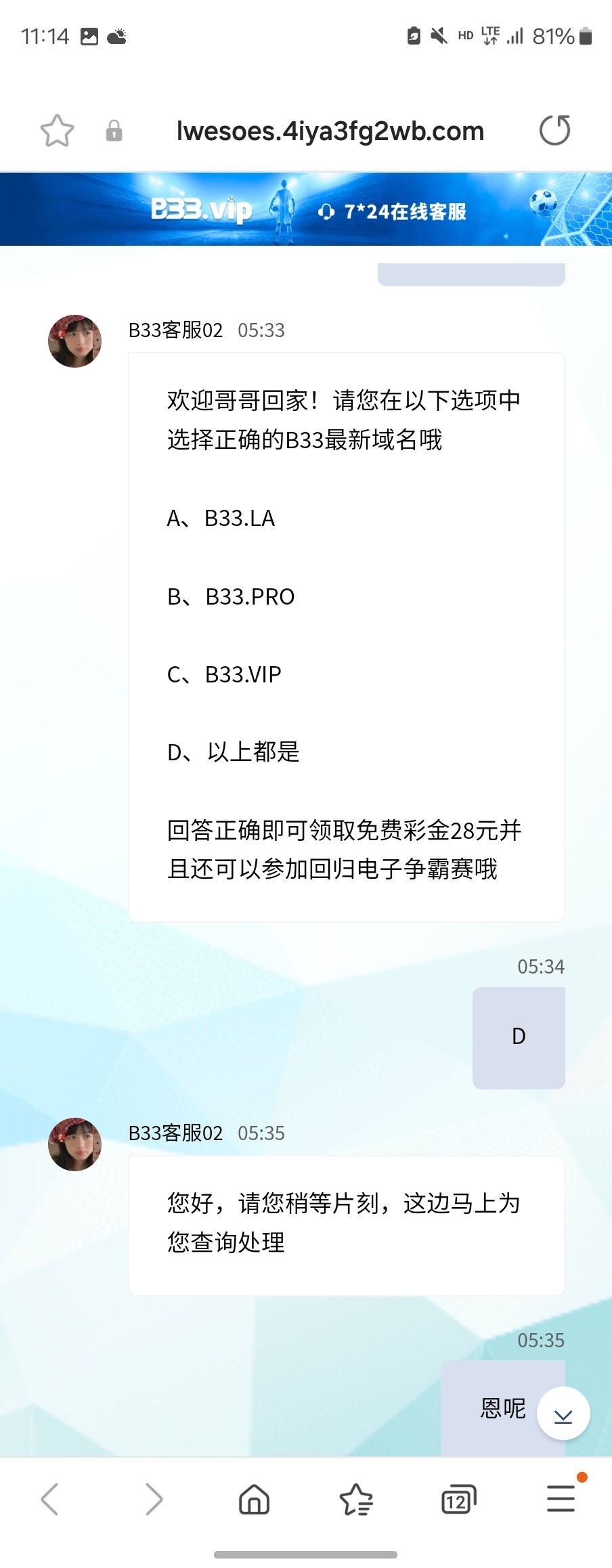联系客服短信回归答题,题目应该一样