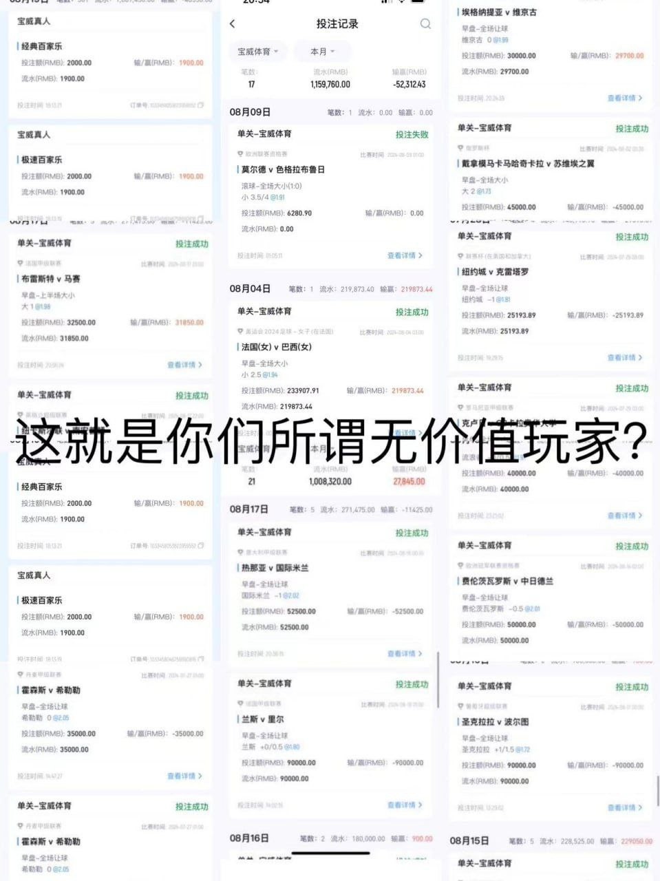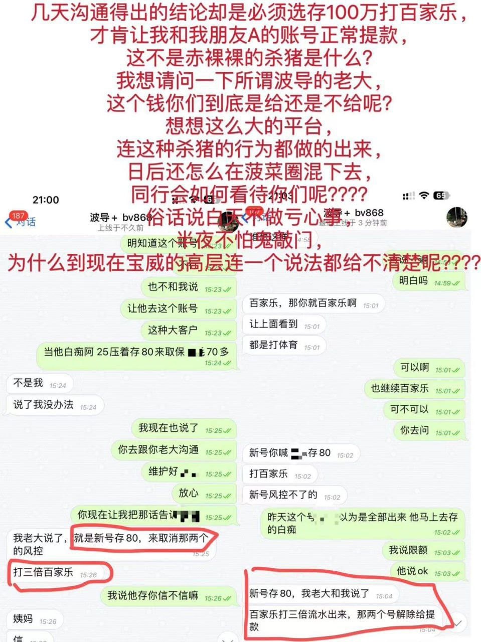 故事的起因在今年3月份,本人经过朋友推荐认识一个宝威平台名叫波导的代理,欧洲杯期间由于一开始上下分都非常正常,并且波导给我大量的平台优惠政策,想我投注量流水更大,当时本人觉得对自己来说无伤大雅,所以就按照他的要求对宝威平台进行充值。