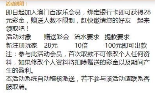活动详情:新用户注册绑卡完善资料,找客服申请28彩金最低100提现具体