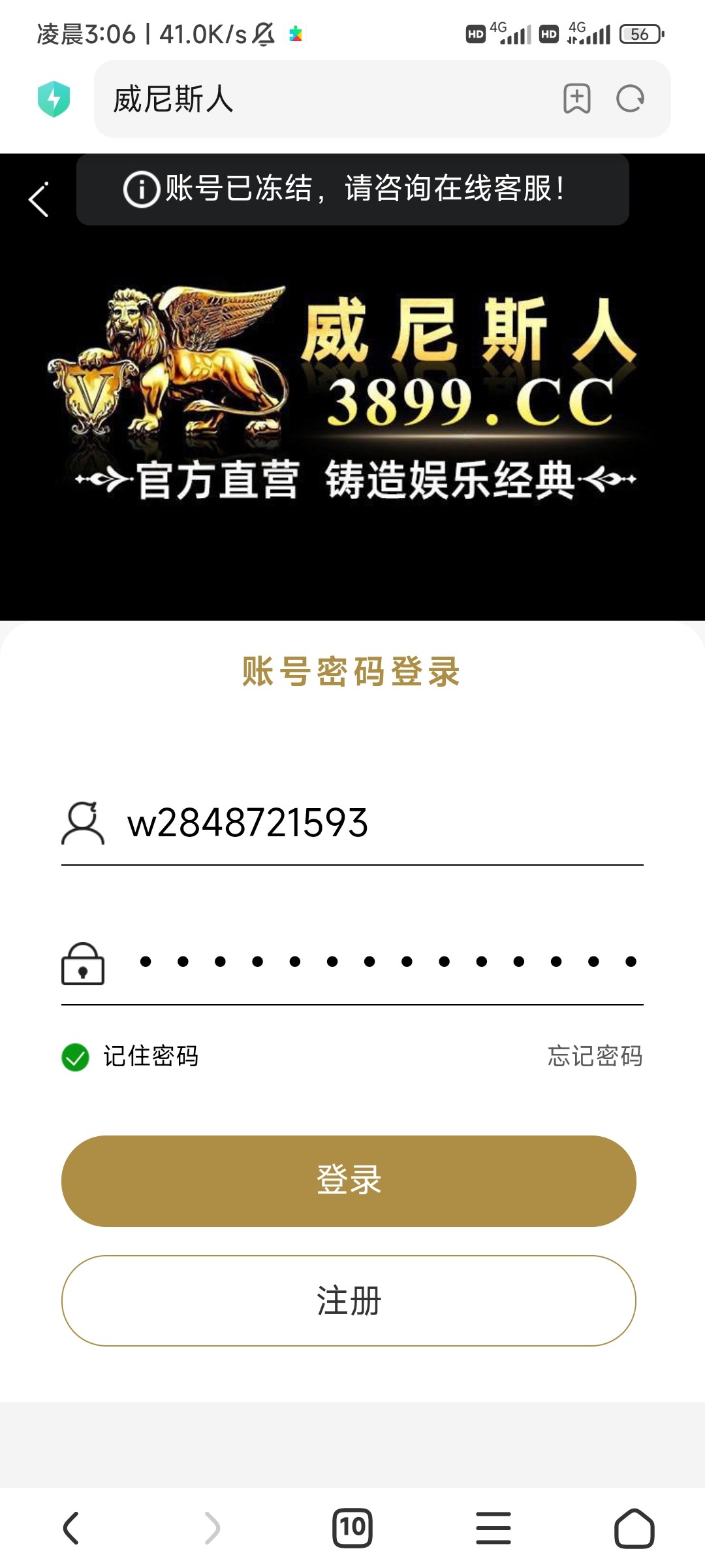 第一次提300出了第二次反水上460直接冻结账号