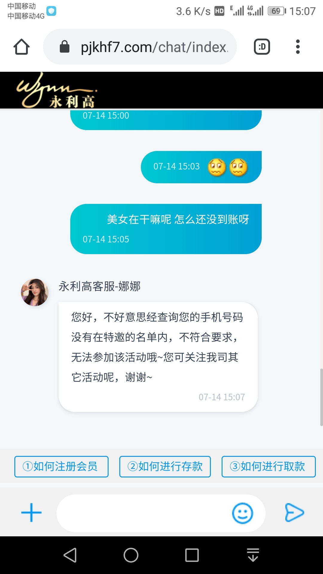 新用户手机号注册联系在线客服发账号手机号给他查 碰瓷188特邀彩金 要短信图的话自己保存一下发给他 游戏和提款限制自行询问客服