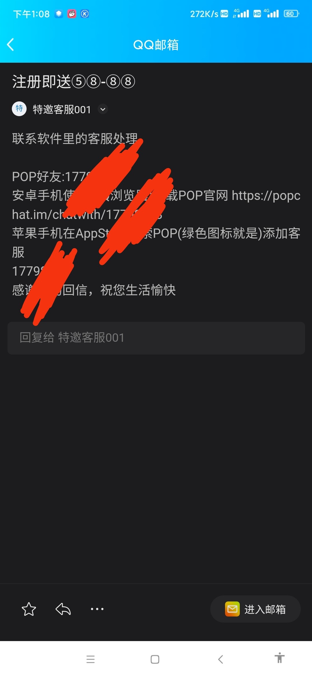 邮箱看到送88 38都是黑