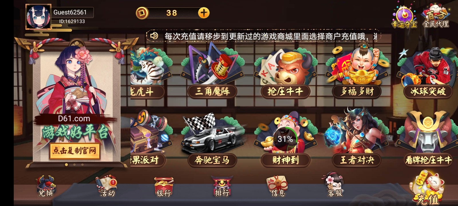 昨天晚上白嫖了450,第一次白嫖到这种台,打的炸金花和红蓝