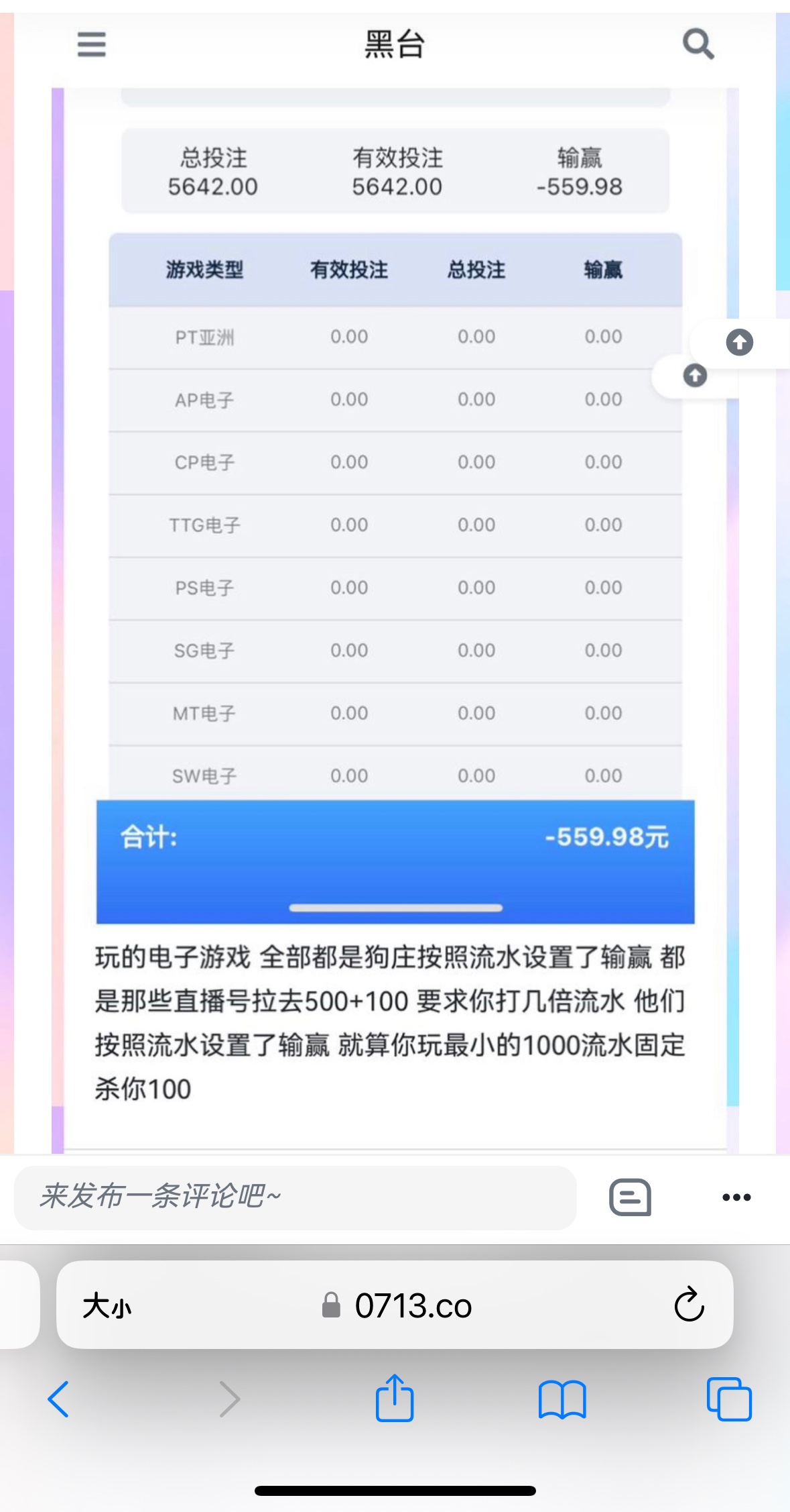 不是统一管理 接的游戏一样但是每个台狗庄吃的钱不一样 有一些台一千流水设置你输200 有一些台设置你输100。你到哪个流水百分百输哪个钱 游戏就是好看而已