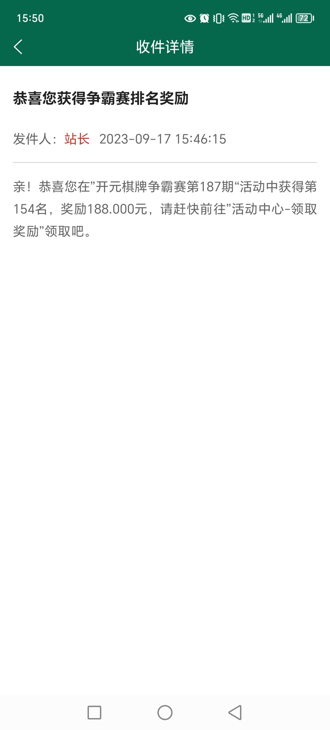 争霸赛排名奖励