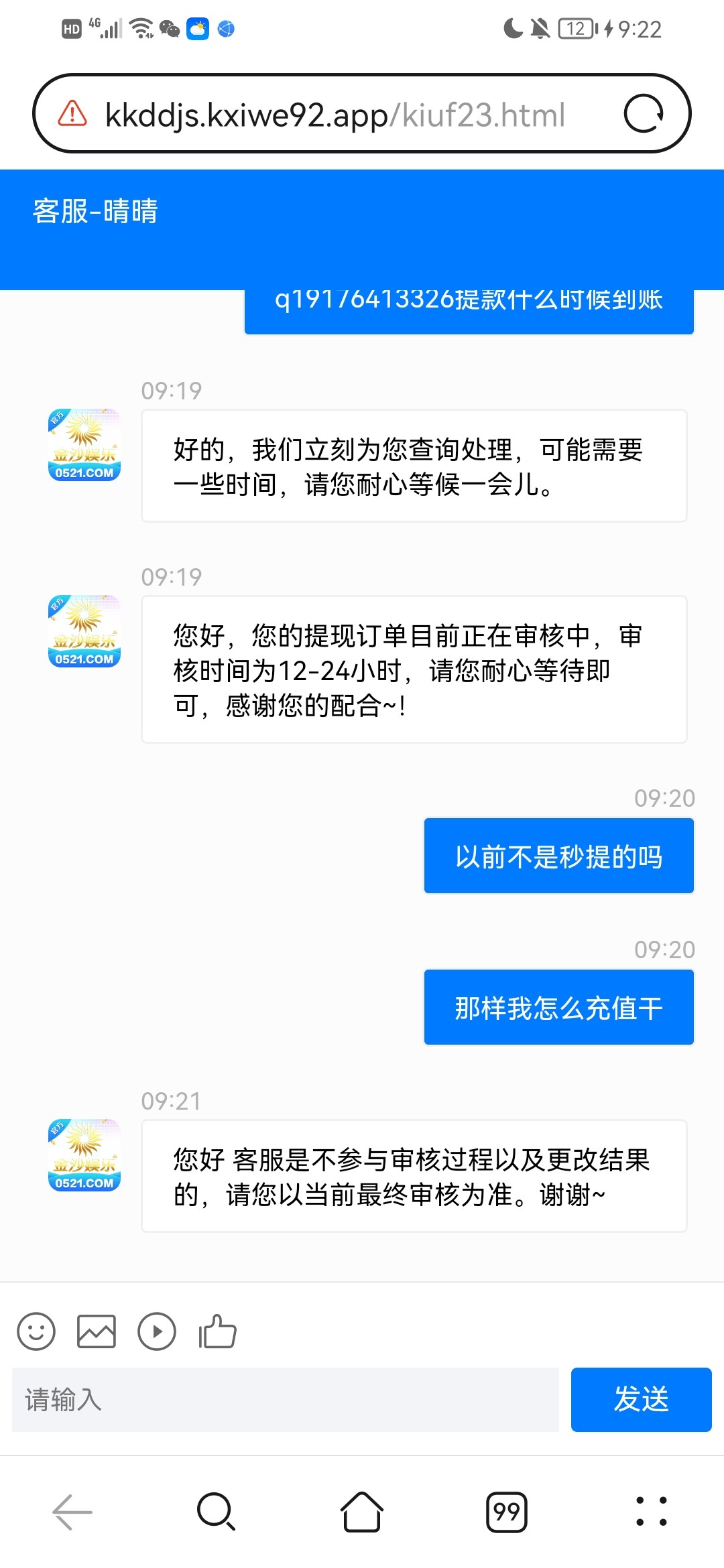 金沙0521估计要黑了提款审核了大家能不充值就不要充值把