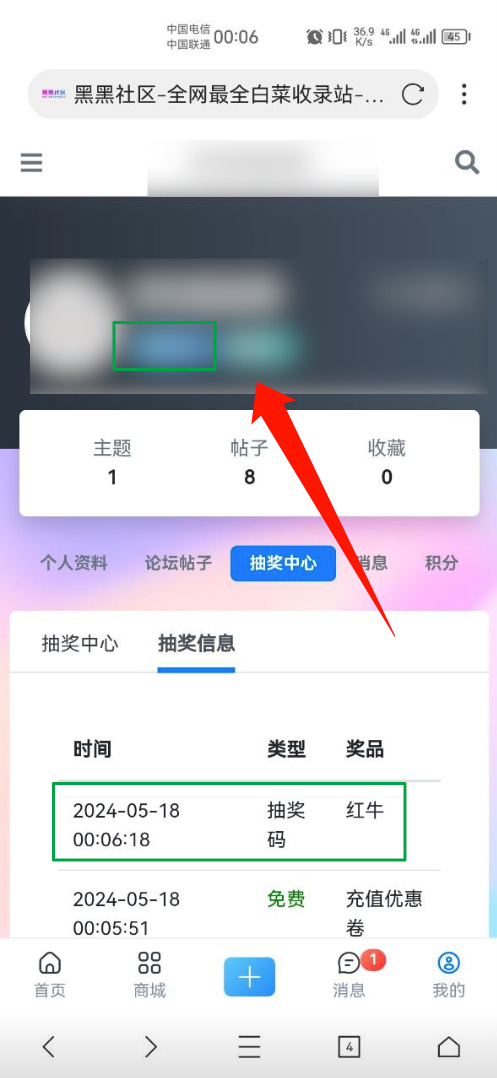 此图为抽奖兑换正确展示页面、需要有社区id+社区账户