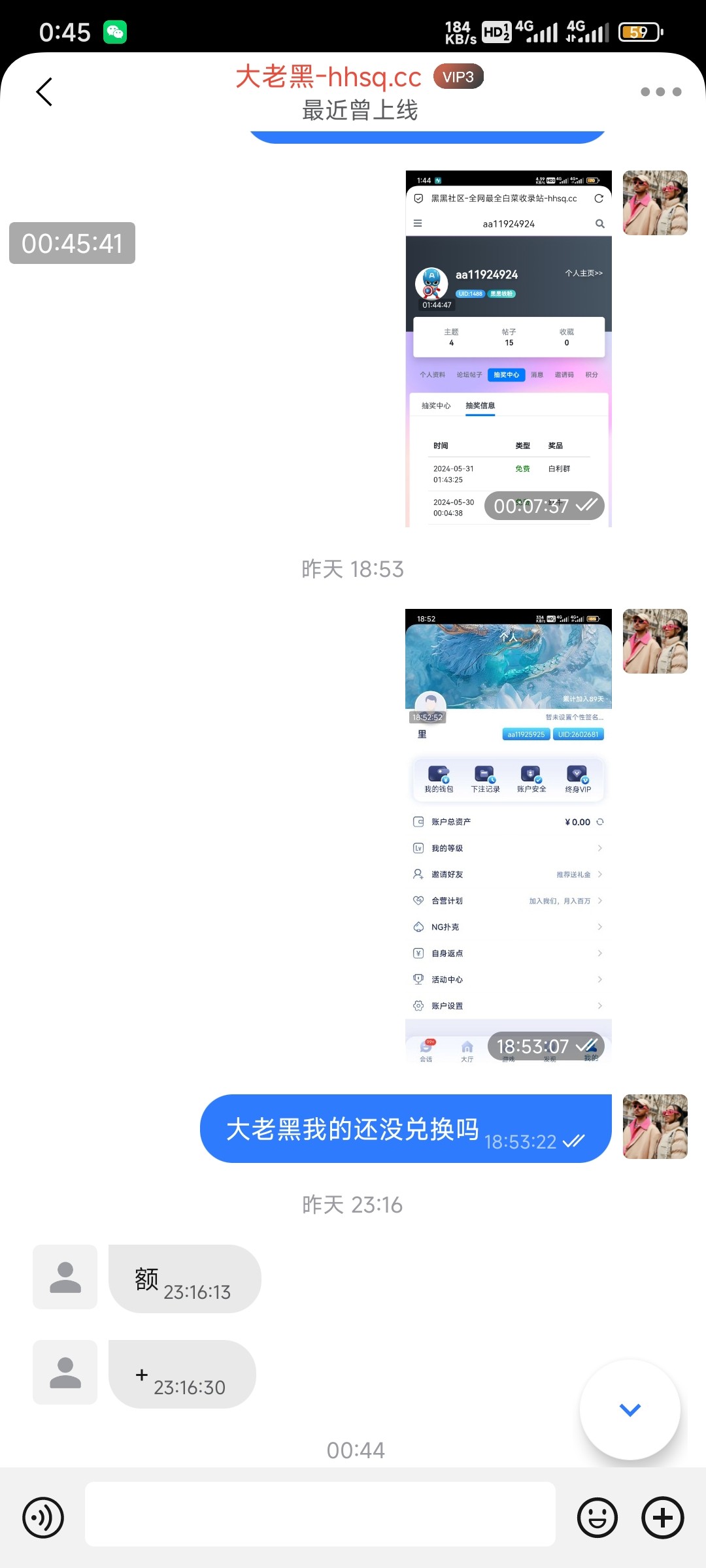 昨天9点发的信息今天还没回