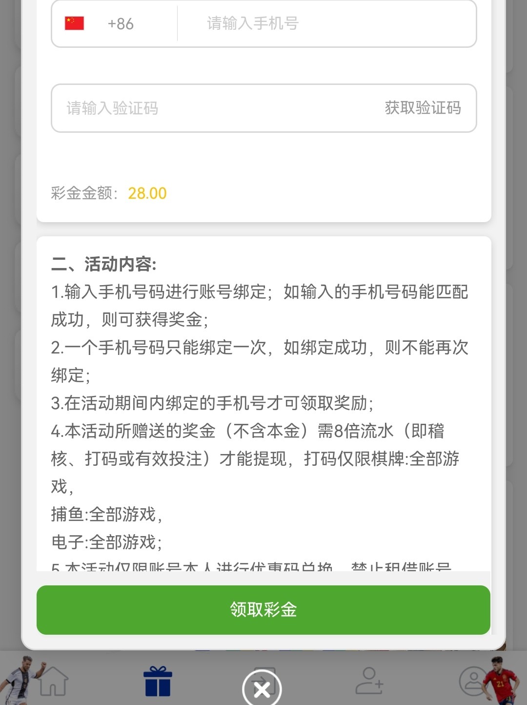 活动里面第一个收验证码领28