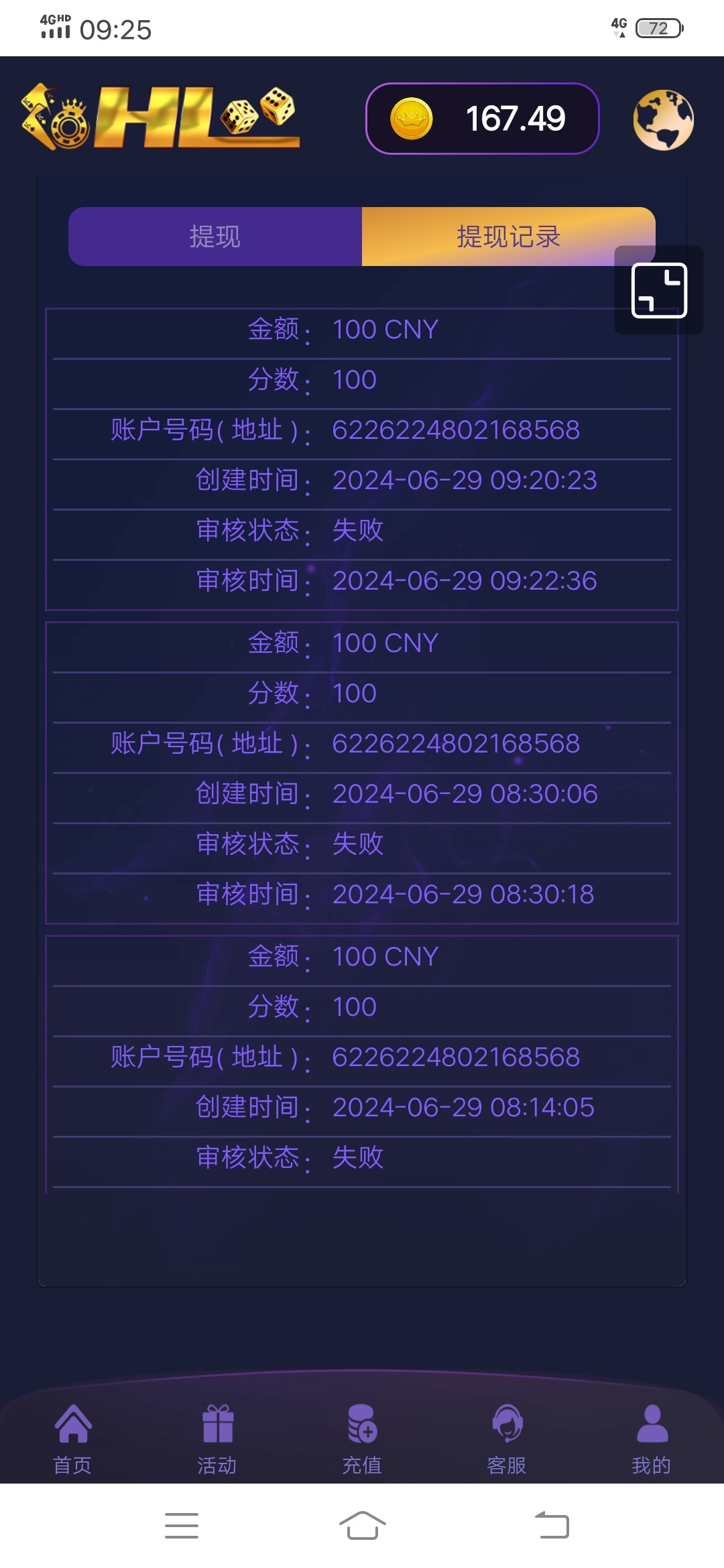 提现失败
