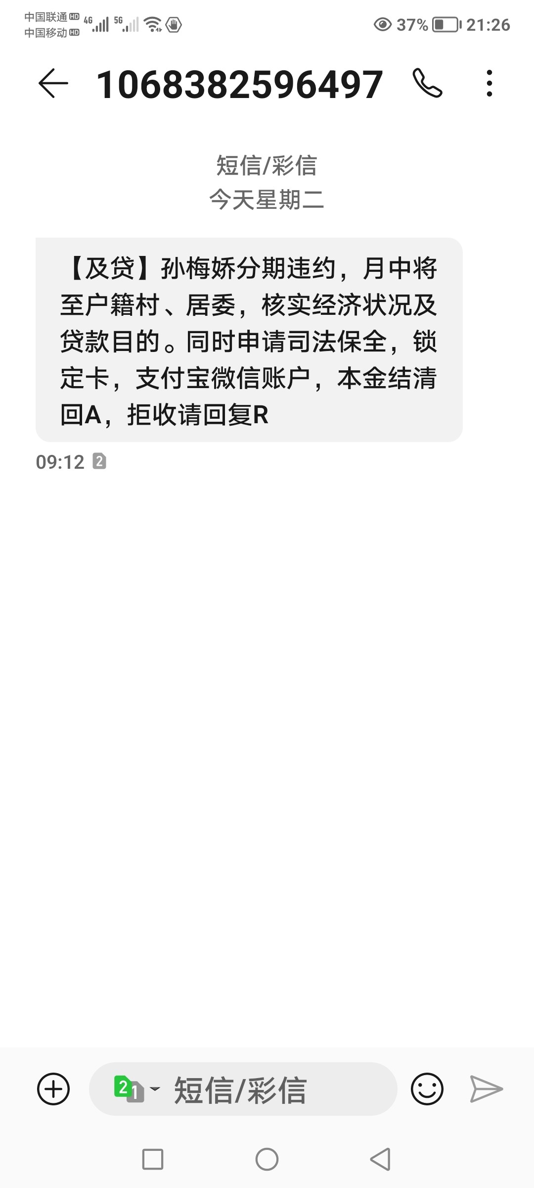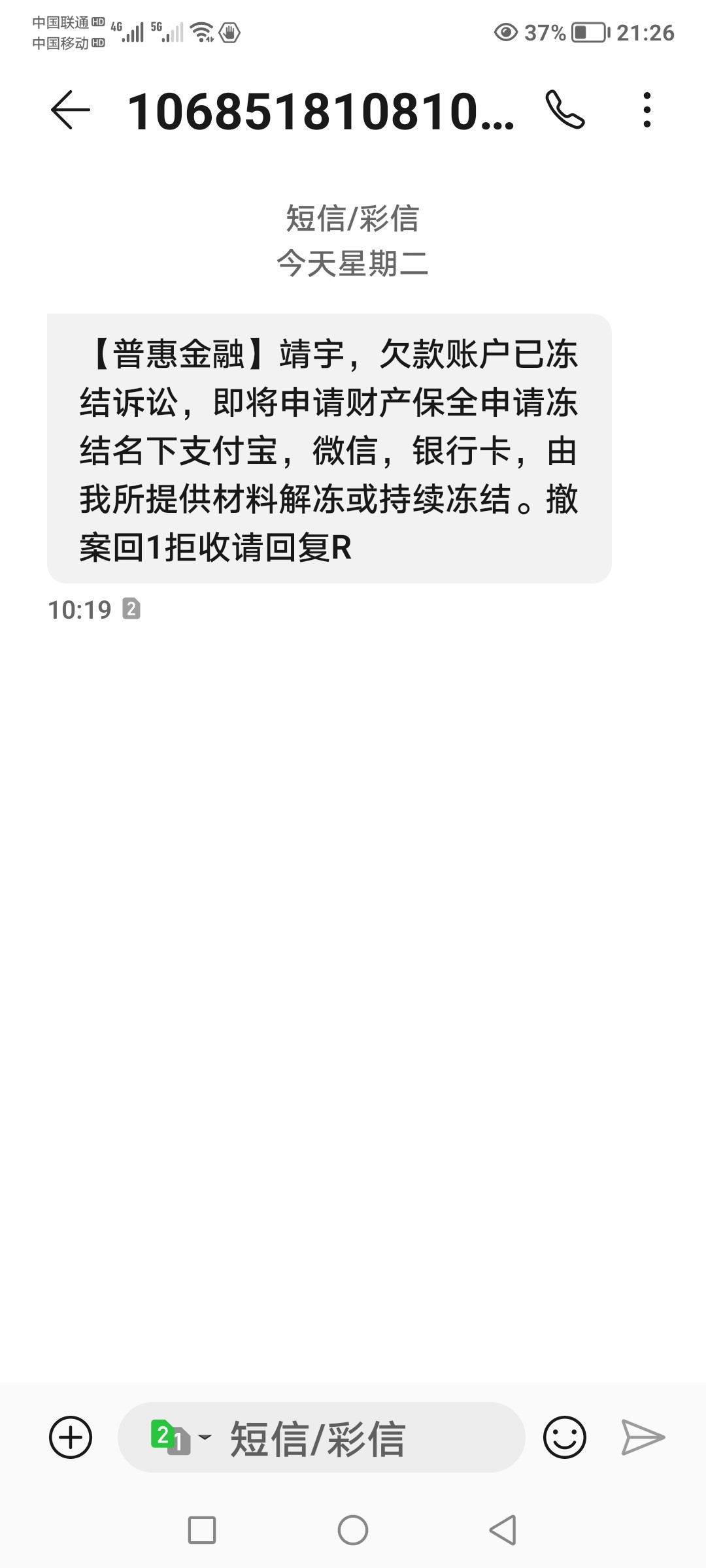 我这个手机号每天都能收到这四个人的催款信息,关键是这四个人我一个都不认识。