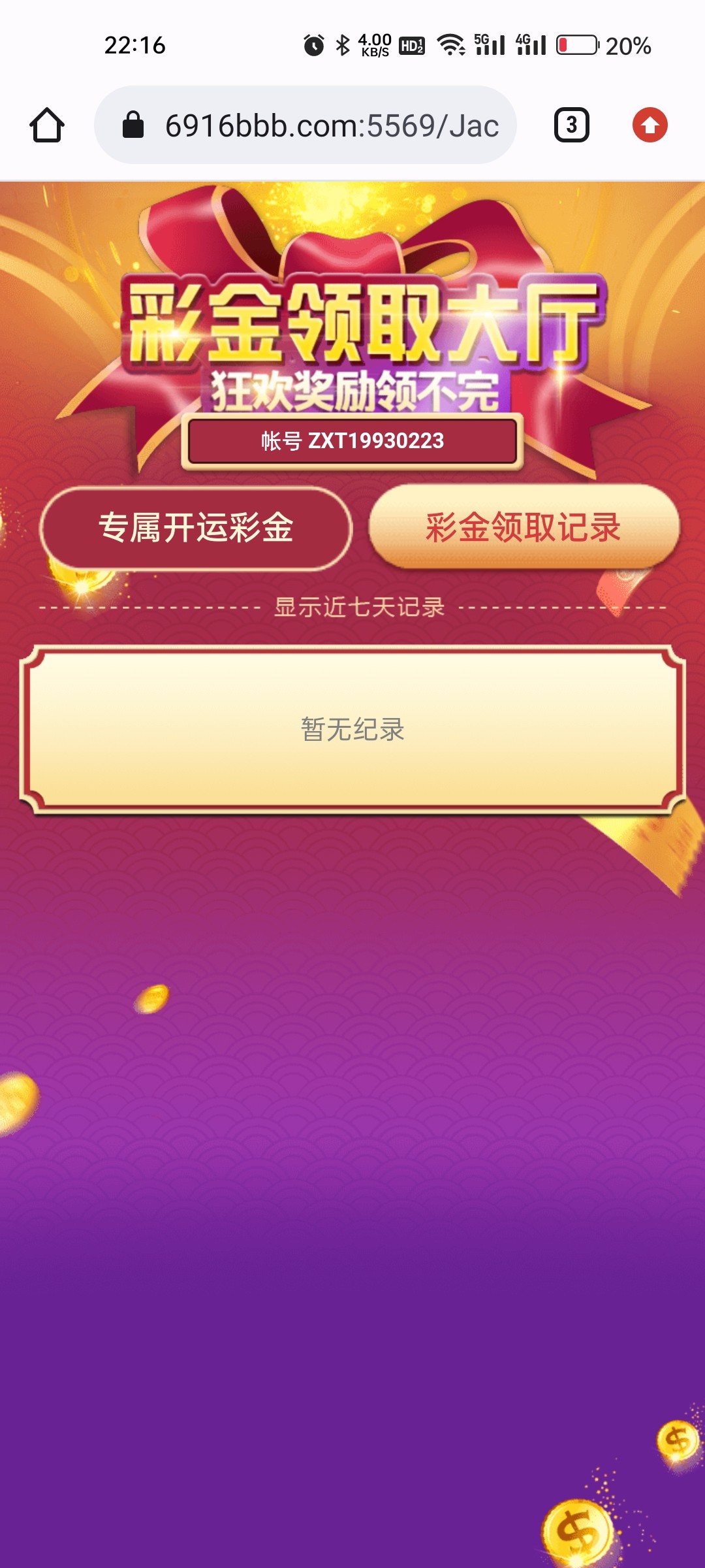有账户的兄弟可以上号查看下,没充值的也有机会领到,都登陆账户-点我的-彩金中心领取!