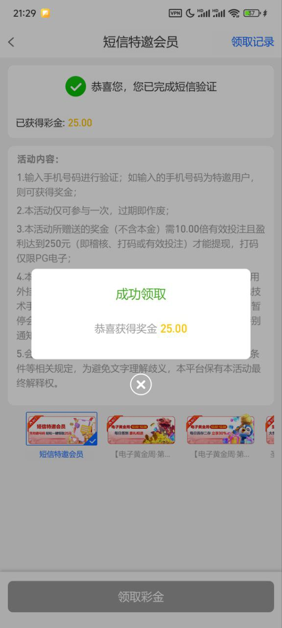 绑定手机号自助领取,不是特邀的还有一个APP下载彩金,特邀彩金10倍流水限制pg电子,没有的无视就行