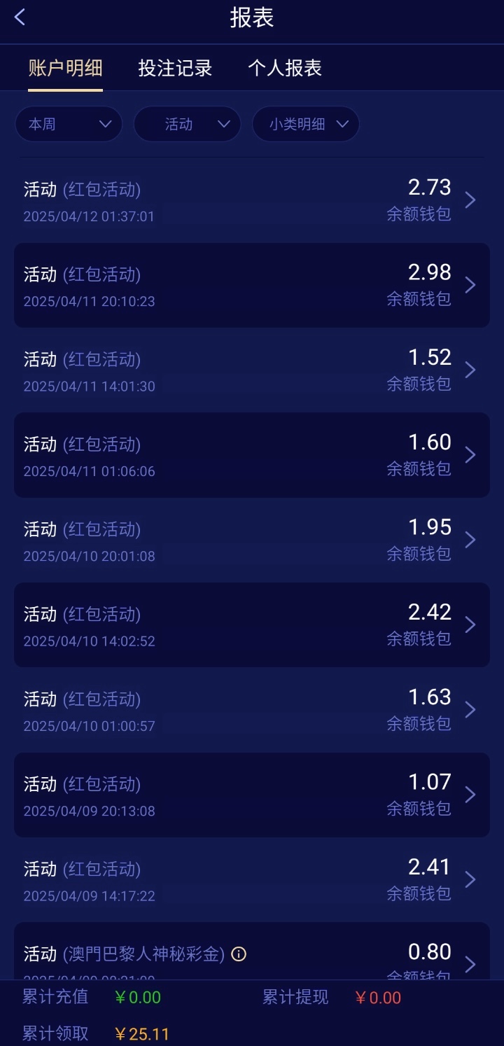 这两个台子近期充值过的可以去抢红包,每次红包1.5~3块钱左右,一天3轮,可以两个台子配合打出来,10块钱就可以提现