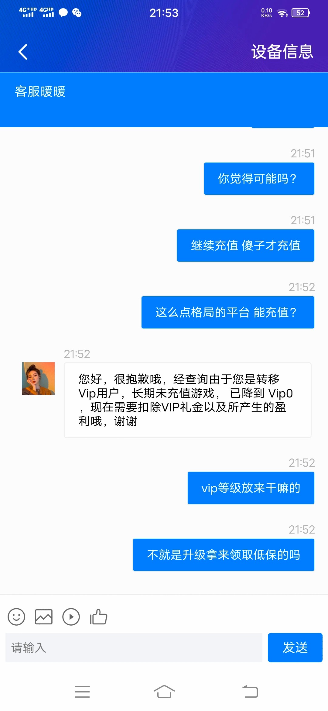 真是个沙雕,长期不玩vip会掉 现在的年轻赌狗怎么那么傻逼的呢
