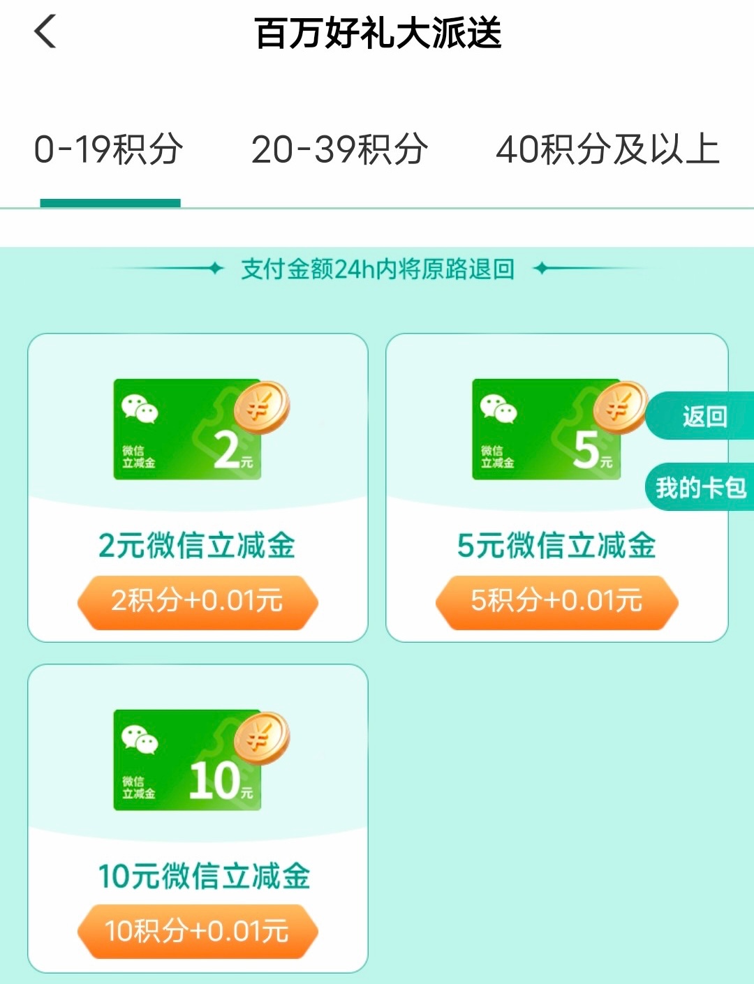 在首页活动百万好礼大放送,点进去抽奖1积分等于1块钱,积分可以兑换立减金,去买东西的时候用农业银行卡支付就可以使用兑换的立减金了
