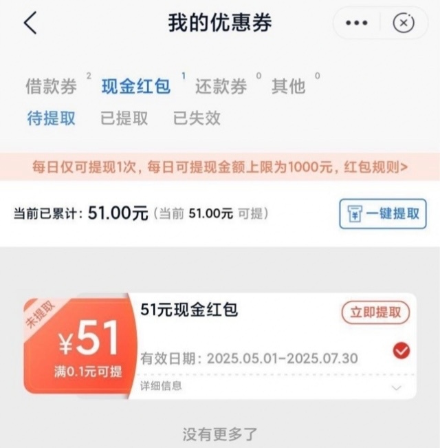 保底是5.1元,直接提,秒到