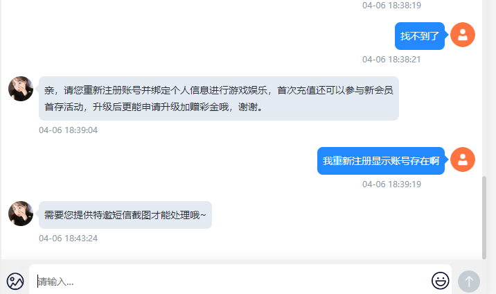 前面回消息挺快,叫我注册账号,我昨天就注册了,秒发账号,结果不回消息了