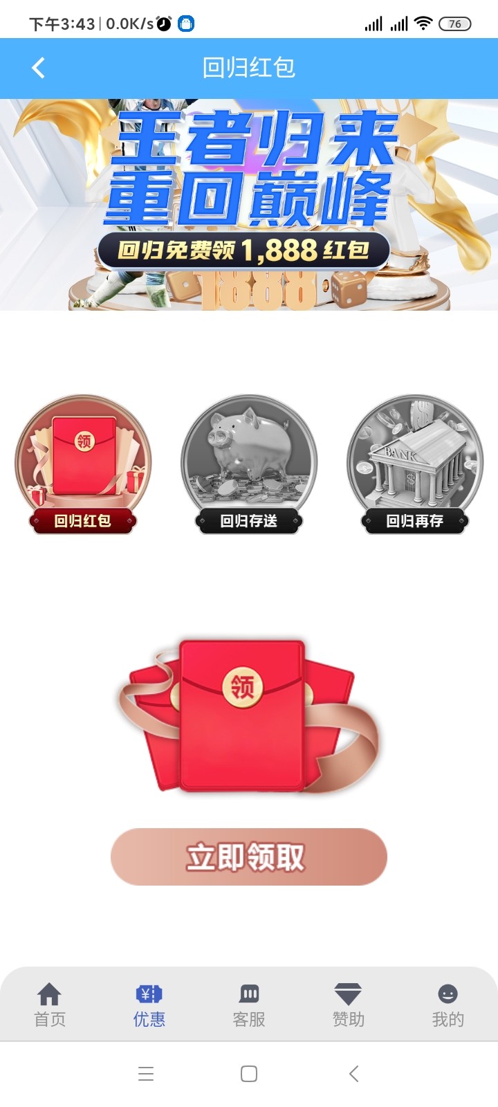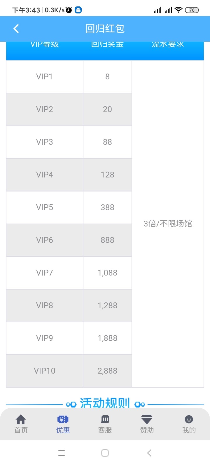 有你妈的回馈 充值过都没有 发出来干什么摆设啊傻逼玩意
