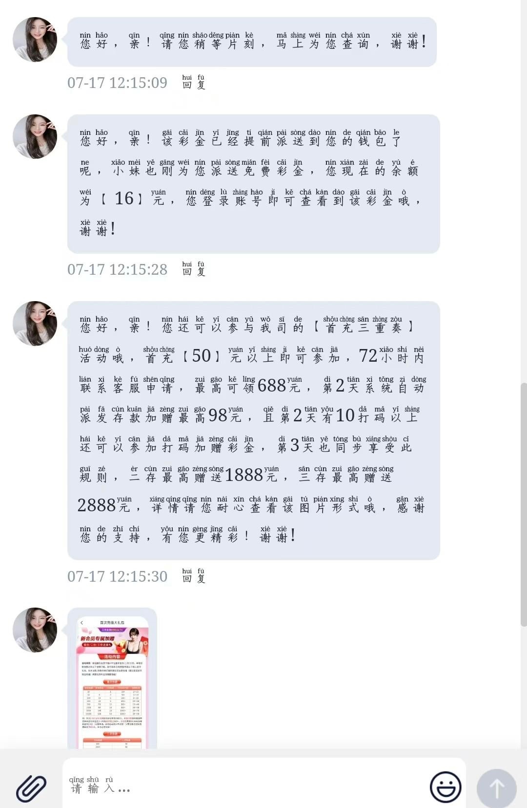 注册有号送过彩金的或充值过的兄弟都可以去碰瓷电话回访彩金试试