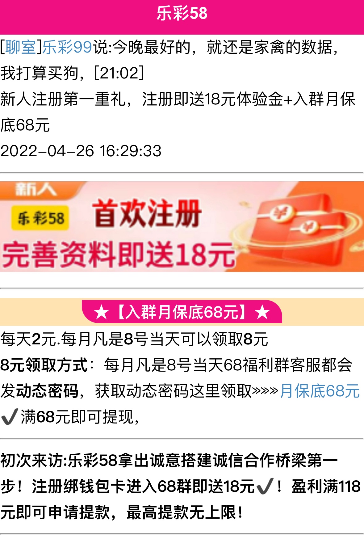 【乐彩58】—✅—注册送18彩金