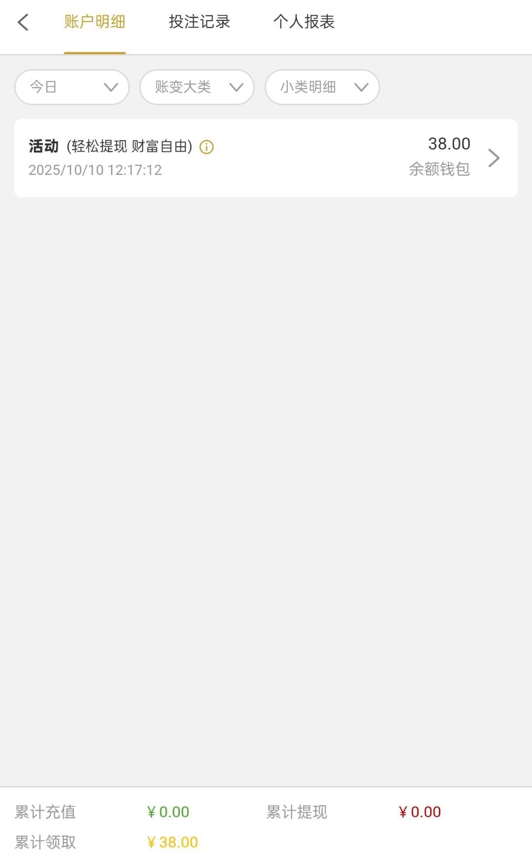 存款3次以上总存款100以上,7天以上没提现过才有彩金领,符合的兄弟可以去领取一下