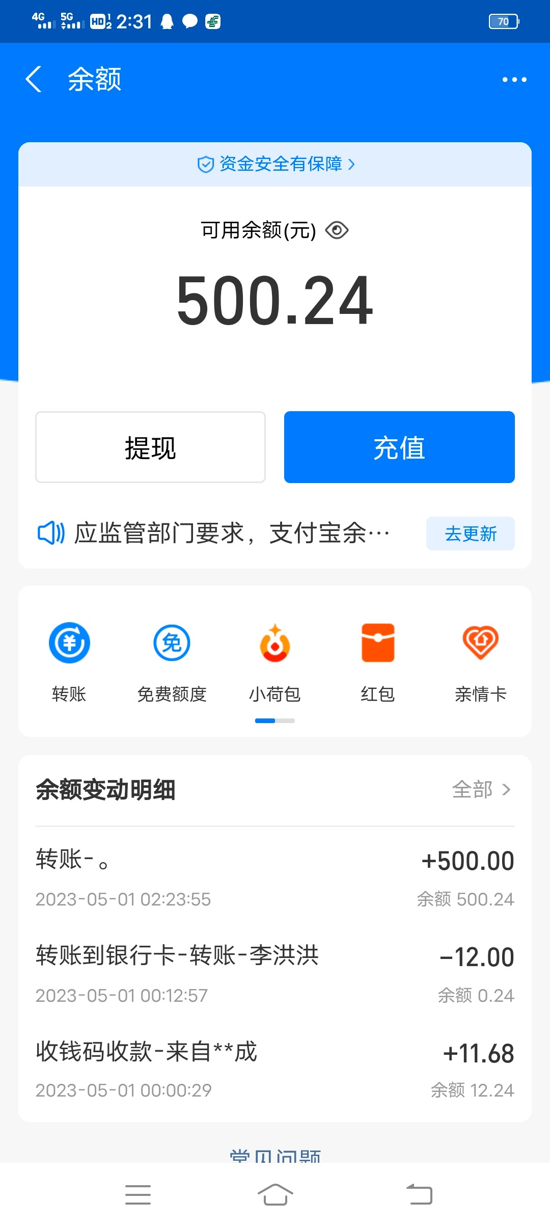 到账五百