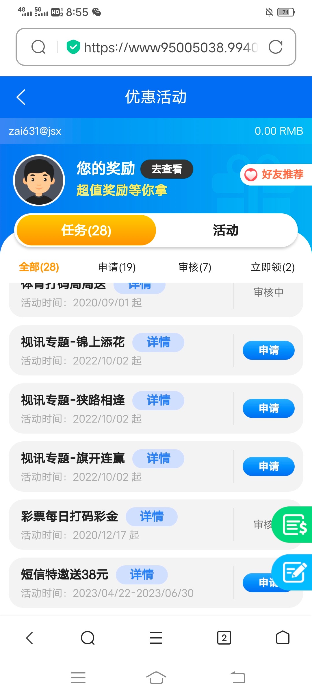 你这边打开是乐虎,但是申请不了,说我不是特邀,因为我昨天是找客服,客服说没有充值送,所以我就没有太在意,今天看到你发,然后我又去我这边收到的网址,我进去看了一下,进去的那个页面是跟你这个是一样的,然后点进去也有一个申请,我有我又提交了,不知道能不能到账,两个平台,一个模子,哎,说实话,感觉这个模子有点坑