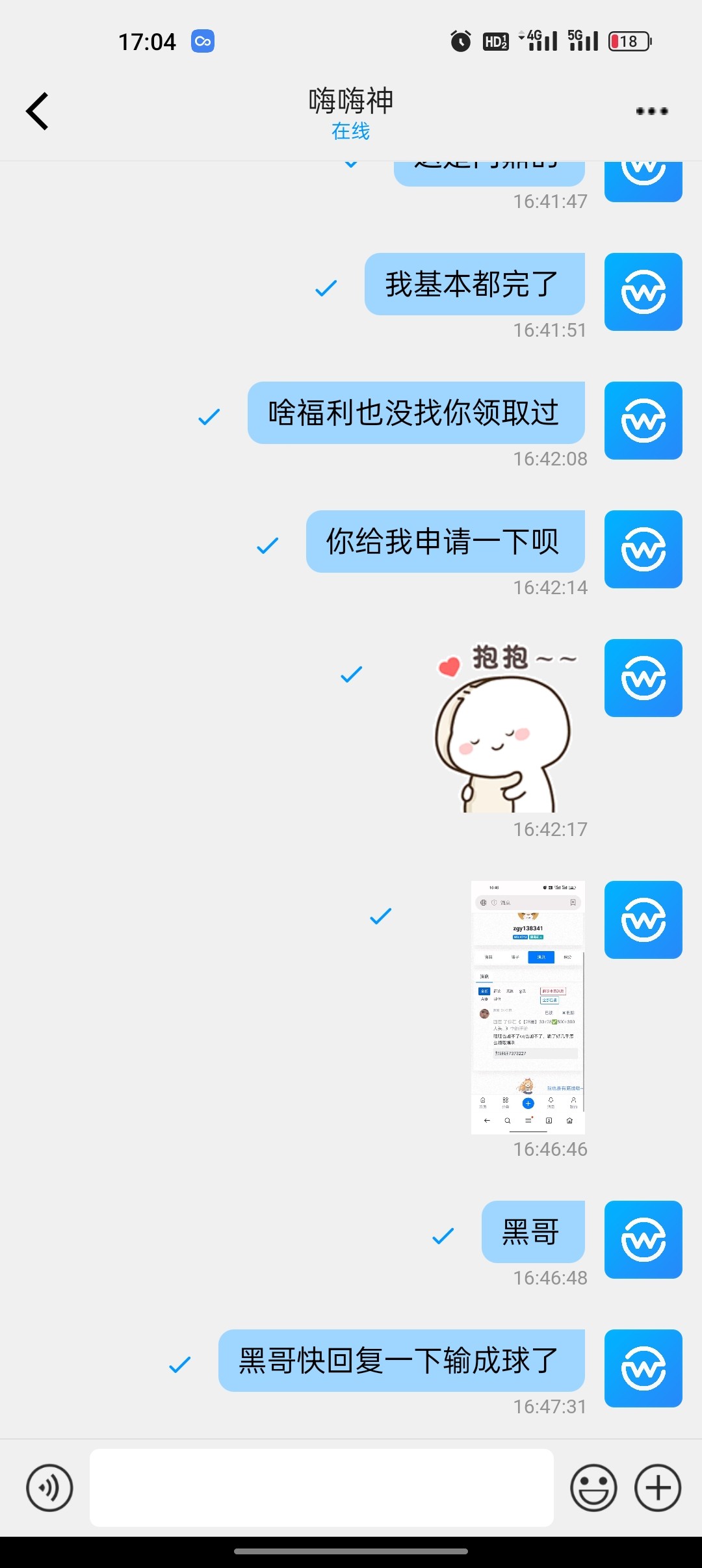 旺旺回消息啊黑哥