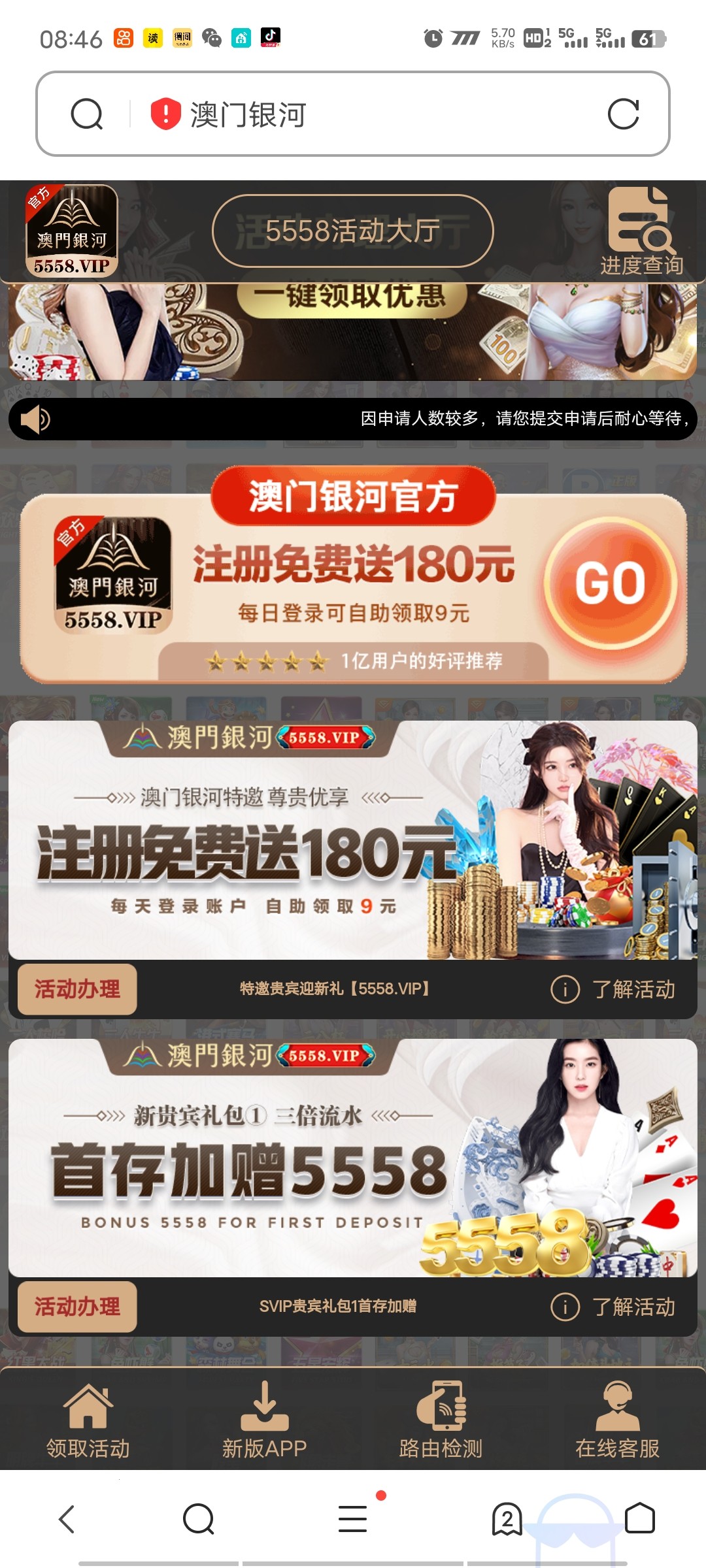 注册送180,每天申请9